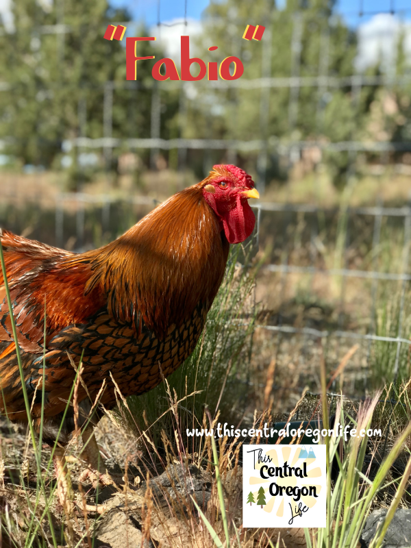 So now you know what happens when you live with Fabio. It is really interesting, and I love this guy dearly. I never dreamed I would a) have a rooster b) know anything about roosters c) enjoy a rooster’s company. I look forward to sharing our adventures with you.